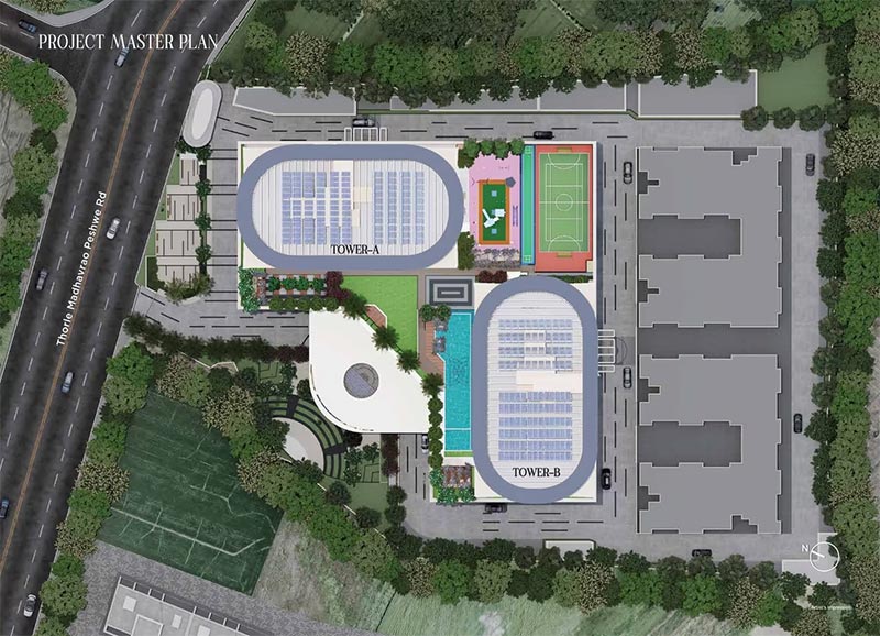 Welcome to Goel Ganga Legend County, Bavdhan, Pune's premier destination for luxury living by Goel Ganga Corporation. Nestled in the peaceful Bavdhan area, this exclusive project by the esteemed Goel Ganga Group presents beautifully designed sports ground facing flats that epitomize elegance and comfort. Spread across 30 acres, Ganga Legend County features 14 impressive towers, making it one of the tallest residential developments in the region. With seamless access to the Mumbai-Bangalore Highway and close proximity to popular areas like Kothrud and Baner, residents enjoy both convenience and tranquility, surrounded by lush green landscapes and top-tier amenities.